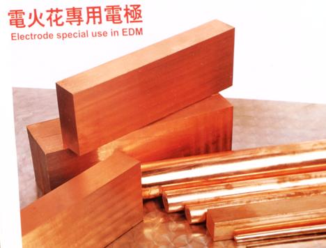 高純度,組織細密,含氧量極低。無氣孔、沙眼、疏松,導電性能極佳,電出的模具表面精度高,經熱處理工藝,電極無方向性,適合精打、細打,性能與日本三寶紅銅相當,價格更實惠,是替代進口紅銅的首先產品Cu99.95% O 0.003 導電率98%IACS 硬度85HV