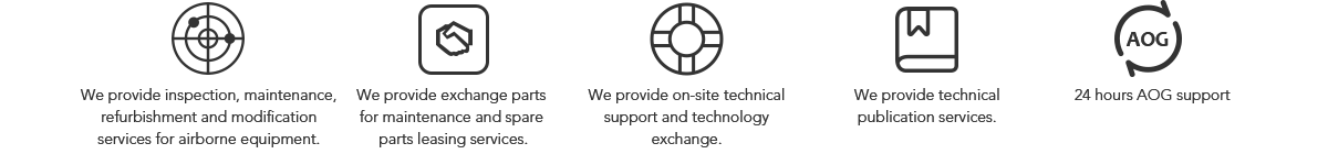Our maintenance covers several models such as Boeing 737~777, Airbus 320~340, MA60, and 600, including coverage over 5 chapters such as ATA2730313379.We have rich resources in lighting system, indicative recording system and other technical aspects of product maintenance. And we are highly competitive in depth repairs of products.
